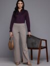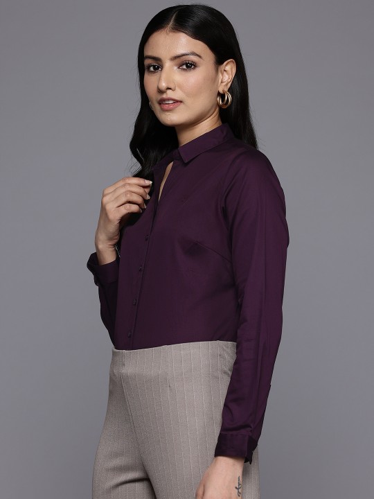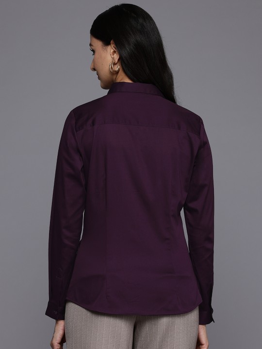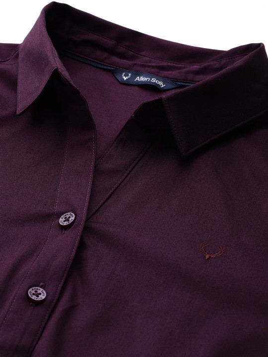 Burgundy solid Formal shirt ,has a spread collar, button placket, long regular sleeves, curved hem