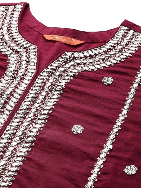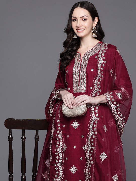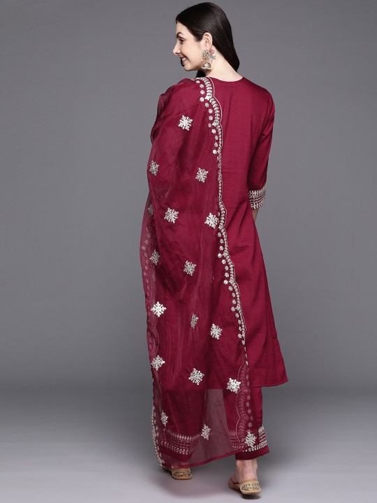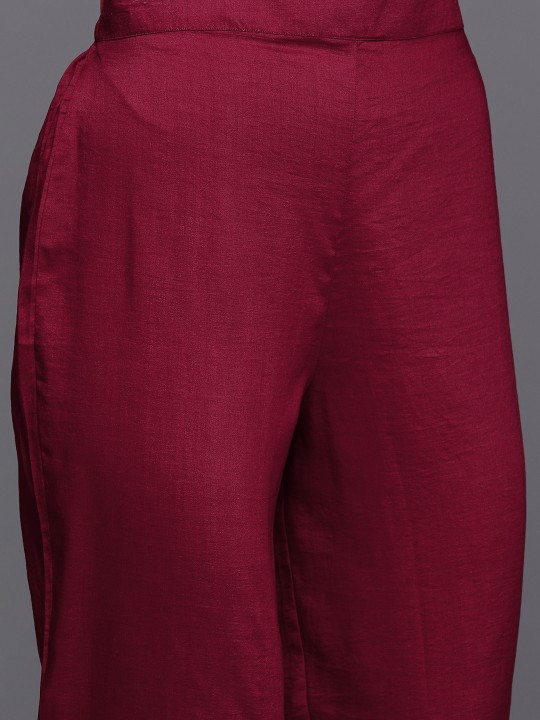 Maroon embroidered Kurta with Trousers with dupatta