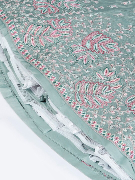 Lime green and pink embellished dupatta, taping border